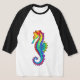 Articulação artificial, brilhante, arco-íris, cavalo de mar poligonal sobre fundo branco. Tatuagem brilhante.