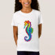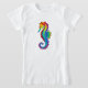 Articulação artificial, brilhante, arco-íris, cavalo de mar poligonal sobre fundo branco. Tatuagem brilhante.