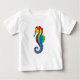 Articulação artificial, brilhante, arco-íris, cavalo de mar poligonal sobre fundo branco. Tatuagem brilhante.