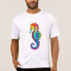 Articulação artificial, brilhante, arco-íris, cavalo de mar poligonal sobre fundo branco. Tatuagem brilhante.