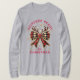 Ponha seu espírito natalício em frente com esta camiseta festiva de Natal com um arco na moda em um padrão vermelho, ouro e xadrez de Buffalo preto, tocado com galhadas de renas brincalhão. Espalhados por todo o design estão imergindo estrelas de ouro e flocos de neve, adicionando um toque de magia à estação. O texto vermelho ousado, "Reindeer Ready for Christmas" (Pronta para o Natal), captura a diversão e o entusiasmo das festividades de Natal. Esta design traz uma vibração acolhedora, mas chique às suas celebrações de Natal.