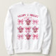 A design cor-de-rosa de Natal com arcos pré-cheios e vacas nas terras altas é perfeita para comemorações festivas ou brinde.