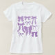 Camiseta feminina Whimsical e coquete, com ilustração desenhada à mão de arcos roxos.