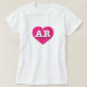 Esta t-shirt tem um coração rosa-quente vibrante que contém as letras maiúsculas, brancas e em negrito maiúsculas AR, a abreviatura oficial para Arkansas, o estado natural.