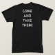 Símbolo da anarquia com silhuetas de AK47. No grego na parte dianteira, "venha tomam-nos."