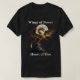Um dragão de ouro feroz a crescer com a lua de cheio no fundo. Um slogan "Asas de poder, coração de fogo" rodeia a imagem. Uma camiseta excelente para um homem ou uma mulher que gosta de fantasia. Contém conteúdo generativo.