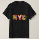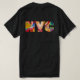Uma t-shirt de arte da NYC, incrivelmente divertida, celebrando a moda Nova Iorque para homens ou mulheres e até design excelente para as crianças vestirem. Letras coloridas agudas contemporâneas elegantes com NYC na frente e no verso da t-shirt. Excelente. Projetado por e trabalho de arte de aquarela por Artista CricketDiane / Designer para Cricket House Studios Art e Design.
