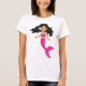 Cartoon de arte rosa de sereia de uma gira-sereia com cabelo preto e uma cauda cor-de-rosa sobre um fundo de cor personalizável.