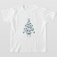 Uma ilustração de uma elegante árvore de Natal branca e chique com muitas bolas azuis penduradas em fundo rosa. Esta design é para pessoas que amam o Natal, dando presentes e presentes.