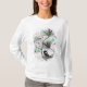 Esta camisa de manga longa pinta uma foto da árvore de Natal da galinha! Os galhos de pinheiro na neve são decorados com pequenos ornamentos. Um doce grão-de-bico preto se senta no galho inferior.