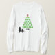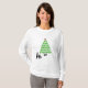 A camisa de Natal perfeita para todos os amantes de estimação! Uma árvore de Natal feita com estampas de pata, com as silhuetas de um cão, gato e rato admirando a árvore!