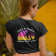Legal camiseta de garotas com texto frontal e traseiro para as autoridades personalizarem e vestirem em um cruzeiro da ilha. Apresenta uma bela palmeira em frente a um pôr do sol bonito rosa e roxo da praia. Camisetas personalizadas bonitas para sua viagem de reunião de verão para a costa. Camisa costeira divertida.