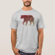 Esta design é o esboço de um urso com um pomar vermelho ou marrom para bege de gradiente de cor e a silhueta de um dentro de árvore.