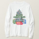 Prepare-se para as férias com esta camisa festiva. Esta árvore de Natal é decorada e tem presentes brilhantemente coloridos à sua volta. As palavras MERRY CHRISTMAS têm um padrão verde.