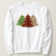 A camisa perfeita de Natal com árvores de Natal vermelhas, verdes e douradas feitas de impressão e xadrez de animais.