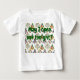 Esta camiseta bebê tem uma design moderna do século médio de árvores de Natal em diferentes estilos. Uma tem uma grade com retângulos com dentro de esteritivos. Outro tem retângulos arredondados com dentro de retângulos menores. Um terceiro tem linhas curvas com estrelas sobre elas. A árvore final é um triângulo com outros triângulos menores dentro.