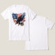 Uma exibição impressionante de força e patriotismo, esta imagem captura uma majestosa águia careca soprando contra um pano de fundo da bandeira americana. Com suas asas completamente espalhadas e olhos trancados em um olhar feroz, a águia encarna a liberdade, a resiliência e o espírito indomado da nação. As vibrantes ondas vermelhas, brancas e azuis da bandeira estão orgulhosamente atrás, reforçando os símbolos persistentes de liberdade e orgulho. Uma representação perfeita da força americana e da devoção inabalável!