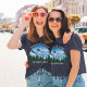 Personalizada camisetas femininas para sua viagem de verão ou cair para as montanhas do Colorado ou uma bela cabana na floresta. Esta árvore personalizada legal apresenta um desenho bonito de montanhas com capas de neve em frente a árvores de abetos verdes. Uma camiseta da natureza excelente para uma família amante do exterior para a expedição da natureza.