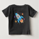 Este design de espaço exterior apresenta um astronauta cercado por planetas, um ovni, cometas e muitas estrelas. Você pode personalizar tanto o nome quanto a idade. No verso está um foguete flutuando no espaço com estrelas. Veja toda a coleção correspondente.