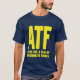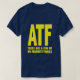 Paródia engraçada do uniforme do ATF vestido por agentes do departamento dos E.U. do álcool, do tabaco, e das armas de fogo. Seu drinkin', smokin', e os amigos do shootin amarão este! Design amarelo brilhante na camisa dos azuis marinhos… apenas como o autêntico. Você pode igualmente pôr este design sobre toda a outra camisa da cor.