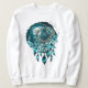 Bonito diseño de un atrapasueños, plumas y luna llena, inspirada en el arte místico y la conexión con los sueños.