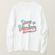 A design da camiseta apresenta a frase "Atrevo a descobrir" em tipografia ousada e aventureira. O design geral transmite um sentido de curiosidade e coragem na busca de novas experiências e conhecimentos.