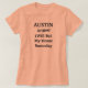 Austin cita t-shirt. AUSTIN é a sua cidade dos sonhos? Sua localização de sonho? Então você vai adorar esta citação. O texto é "AUSTIN (Will Be) My Home, um dia" com "is not" riscado. Mostre a todos onde você adoraria viver!