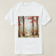 The painting shows tall trees with brown trunks and bright red and orange leaves.