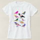T-Shirt com aves decorativas e flores com ilustração colorida.