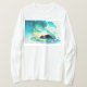 Um Axolotl balançoso repousa pacificamente em meio a uma folhagem vibrante, banhada à luz do sol. Flores cor-de-rosa macio e folhas verdes grandes criam uma atmosfera serena e sonhadora.