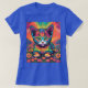Camiseta de Kitten de "Groovy Meowments" Azul Esta é uma t-shirt azul com a arte psicodélica "Groovy Meowments" na frente. O design foi criado com arte gerativa. O trabalho de arte colorida apresenta um gatinho bonito em um campo de flores. "Groovy Meowments" está na imagem em um script amarelo. A camisa é 100% algodão. Você pode alterar o texto clicando no botão Personalizar.