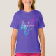 Borboleta Azul na moda e Camiseta Flor Rosa.