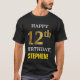 Esta simples design de camisa preta, tema de aniversário, apresenta um desejo quente de aniversário como "FELIZ 12 BIRTHDAY, STEPHEN!" na frente, em texto ousado. O número de aniversário tem uma aparência falsa e imitada de cor dourada. O nome na frente pode ser personalizado. Uma camisa como esta poderia ser divertida de vestir numa festa de aniversário que está sendo realizada para alguém que está comemorando seu décimo segundo aniversário. [~Z0000318]