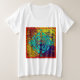 Um medalhão de aqua com sotaque de cor e laranja está sobre um fundo de ouro azul, amarelo e vermelho escuro. A laranja vermelha arma o design.