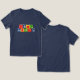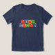 An anti Trump women's t-shirt that spells "Dump Trump" with baby blocks.