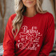 Stylish holiday / seasonal red long sleeve t-shirt for women (style can be customized) features a trendy 'Baby Its Cold Outside' white script typography design with snowflake and star accents.