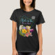 Camiseta de festa de solteira tropical com lugar para um código QR. "Comprar-me uma bebida", mostrada a preto, com outros estilos e opções de cores. Cocktails tropicais em cores divertidas e objetos de vidro sentam-se entre o hibisco havaiano, o anthurium e as folhas grandes nesta design. As linhas geométricas azul e verde enquadram duas linhas de texto. Escolha "noiva" ou "noiva a ser", com código QR no canto superior direito. Também adicione uma linha como, "Comprar-me uma bebida" para encorajar os convidados do partido a se espraiarem pela honra. Carregue o ícone de código QR para onde a doação de dinheiro irá e verifique se funciona.