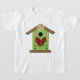 Esta camiseta mostra uma linda e colorida casa de pássaros verdes com coração de arte popular e flores margaridas, perfeita para pequenos que amam a natureza e a criatividade. O design sombrio adiciona uma vibração divertida no campo, fazer-a uma opção divertida e confortável para dias de escola, playdates ou excursões casuais.