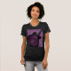um violão-baixo foi fotografado contra um pano de fundo floral e então manipulado digitalmente em uma imagem monocromática roxa