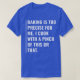 A t-shirt chegou dentro do tempo anunciado e apresentou-se com todas as características que estavam anunciadas. Boa qualidade do tecido e bons acabamentos. O tamanho veio conforme o pedido. Perfeita! Fiz apenas uma pequena personalização no texto, e o mesmo assim veio, bem como todo o restante texto, devidamente impresso e exactamente como estava anunciado na página. Sem falhas!