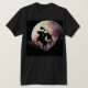 Formulário sombrio do cavaleiro decapitado a cavalo que brandishing a guitarra na frente de um grande, Lua cheia.