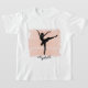 tema do Balé com silhueta de bailarina em um tutu en poninte definido no estilo de aquarela rosa. Personalize com seu nome ou mensagem na fonte curvada de script preto.