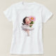 Pastel ballet girl hugs a pink daisy, white tutu, soft glow; whimsical, dance-inspired charm for kids and gift lovers.