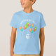 Colorida Camisola Balões de Aniversário, Menino Azul, Camisa-T. Camiseta de honra, convidada para festa de aniversário, com quatro balões coloridos em cores vermelha, verde, azul e laranja.