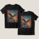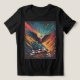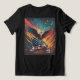 Este trabalho de arte vibrante e dinâmico representa uma poderosa águia careca a subir sobre uma bandeira americana, colocada contra um pano de fundo de cores ousadas e pinceladas de abstrato. A imagem evoca um sentido de patriotismo, liberdade e orgulho nacional.