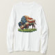 Bison Americano Buffalo com uma bandeira Americana no seu cabelo Comendo erva num campo num design de óleo pintado Deixe este design divertido divertido entreter falar por você.
