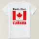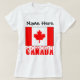 A camiseta personalizada feminina mostra a bandeira canadense com a palavra CANADÁ em letra de neve. Acima, adicione seu nome para uma aparência personalizada ou presente personalizado. A bela bandeira vermelha e branca do Canadá tem duas listras vermelhas em ambos os lados com uma folha de mapeamento vermelha no centro em um fundo branco.