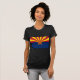 A bandeira do estado de arizona consiste em 13 raios de vermelho e de solda-amarelo na metade superior, as cores da bandeira da espanha, representando os 13 estados originais. O vermelhos e o amarelos igualmente simbolizam o pôr do sol pitoresco da arizona. A estrela de cobre representa o sector mineiro de cobre na arizona. O resto da bandeira é colorido azul, representando a liberdade. Oficialmente, o estado de Web site da arizona, o museu e os materiais do oficial mencionam as seguintes origens da bandeira da arizona: "Charles Wilfred Harris, coronel na guarda nacional da arizona, servida como o capitão da equipe do rifle da unidade em 1910. Durante a competição do rifle no acampamento Perry, Ohio, a equipe da arizona era a única equipe sem um emblema do tipo. O coronel Harris era principalmente responsável para a criação da bandeira da equipe do rifle que se transformou em 1917 a bandeira do estado da arizona. O azul e o ouro são as cores da arizona. O vermelho e o ouro são as cores levados pela expedição de Coronado de 1540 às sete cidades de Cibola. O azul é da "idêntico azul liberdade" à cor no campo da bandeira dos Estados Unidos das estrelas. Desde que a arizona é um estado ocidental os raios do sol de ajuste pareceram apropriados. Há treze raios que representam as "treze colônias originais." A grande estrela de cobre identifica a arizona como o produtor o maior do cobre nos Estados Unidos. "O 27 de fevereiro de 1917, a legislatura passou a conta para adotar esta bandeira como a bandeira oficial do estado da arizona apesar dos votos dissonantes e da recusa de Campbell do governador para afixar sua assinatura à conta." Quando o coronel Harris for creditado com a criação da bandeira da equipe do rifle, diversos indivíduos parecem ter jogado um papel na criação da primeira bandeira oficial do estado. WR Stewart do Mesa estava trabalhando conjuntamente com o coronel Charles W. Harris, que era o general de Adjutant da arizona e a cabeça da guarda nacional da arizona. Stewart, como o presidente da equipe do rifle do Mesa, feltro obrigado projetar uma bandeira para a competição. A esposa de WR Stewart (Mae) sewed a primeira bandeira para a competição de um esboço que fizesse na parte de trás de um envelope. Carl Hayden, senador dos E.U. da arizona primeiro foi relatado para ter sido envolvido com o coronel Harris em projetar a primeira bandeira do estado, e sua esposa, Nan Hayden era responsável para sewing a primeira bandeira do estado. A baga de Rachael, um líder no sufrágio das mulheres e a primeira mulher eleita ao legislador de estado na arizona em seu primeiro ano de statehood são relatados em 1912 igualmente co-para ter projetado a bandeira da arizona com uma outra mulher (Nan provável Hayden) nos anos que precedem o statehood. É provável que muitos indivíduos estiveram envolvidos em seus concepção, design e produção, preferencialmente do que um ou dois indivíduos que trabalham independente, a língua específica usada no estado oficial de materiais da arizona têm provavelmente o mérito. A versão de Stewart/Harris da origem da bandeira da competição é devido a Stewart que deixa cair alguma tintura de cobre e o material branco na água a ferver e no resultado era a cor de cobre que está agora na bandeira que nós vemos hoje. Quando algumas fontes reivindicarem o sol de ascensão das propostas mais adiantadas estêve pensado para assemelhar-se à bandeira japonesa e mudado conseqüentemente à estrela atual, a maioria de fontes oficiais (que incluem originais de estado oficiais) mencionam a bandeira espanhola e a influência dos exploradores adiantados Conquistadores Cabeza de Vaca e Coronado da arizona como procurararam em vão pela cidade perdida (do ouro) de Cibola como a inspiração para as cores.
