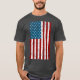 Esta imagem apresenta uma bandeira americana de orientação vertical com uma textura angustiada e enevoada. Estão presentes as listras clássicas vermelha e branca e o campo azul com estrelas brancas, mas com um olhar envelhecido e metido, sugerindo uma safra ou estética rústica.