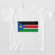 Bandeira do Sudão do Sul. O Sudão do Sul, oficialmente A República do Sudão do Sul, é um país na África Oriental. Sua capital e maior cidade é Juba, localizada no estado sul da Equação Central. O Sudão do Sul tornou-se um Estado independente no dia 9 de julho de 2011, à meia-noite (00:00), no seguimento de um referendo realizado em Janeiro de 2011, no qual cerca de 99% dos eleitores optaram pela separação do resto do Sudão. A bandeira do Sudão do Sul foi adotada após a assinatura do Acordo de Paz Global que pôs termo à Segunda Guerra Civil Sudanesa. A bandeira foi anteriormente utilizada como bandeira do Movimento de Libertação da Pessoas do Sudão. Dizem que as cores representam as pessoas sudanesas do Sul (preto), a paz (branco), o sangue derramado pela liberdade (vermelho), a terra (verde) e as águas do Nilo (azul); a estrela-dourada, a Estrela de Belém, representa a unidade dos estados do Sudão do Sul.